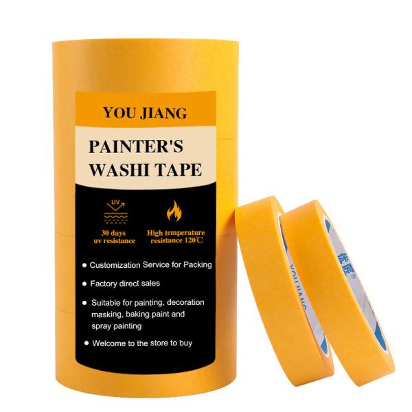 Feature : Masking paper tape with water-based rubber,soft and fit,no residue,high adhesion,easy to tear,can be written on.